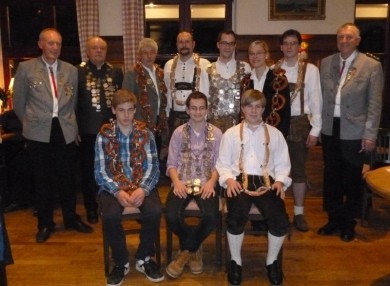 Josef Vogl (Schützenmeister), Florian Wörsching (Wurst Gewehr), Caroline Schwarz (Breze Gewehr), Alexander Wörsching (Luftgewehrkönig), Olaf Kügler (Wurst Pistole), Heinrich Wörsching (Breze Pistole), Josef Vetterl (Luftpistolenkönig), Georg Dallmeier (Sportwart)
